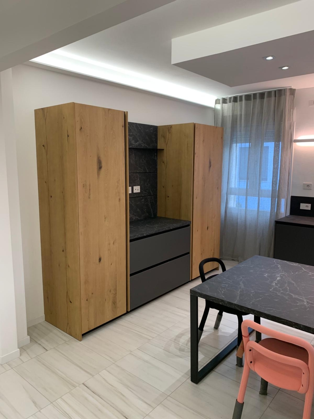 Curando ogni dettaglio, dalla disposizione degli arredi alla scelta dei materiali, il progetto ha trasformato un ambiente in una casa contemporanea e personalizzata, dove ogni elemento contribuisce a un’armonia visiva e pratica.