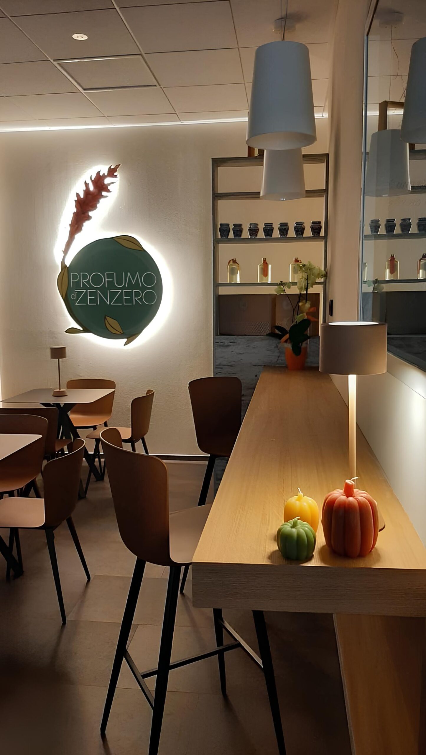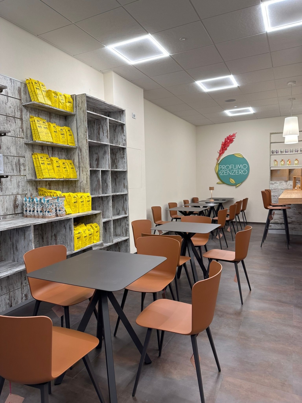 Per il nuovo progetto Profumo di Zenzero, abbiamo realizzato un ambiente dal carattere moderno e conviviale, pensato per offrire comfort e funzionalità sia agli ospiti che al personale.