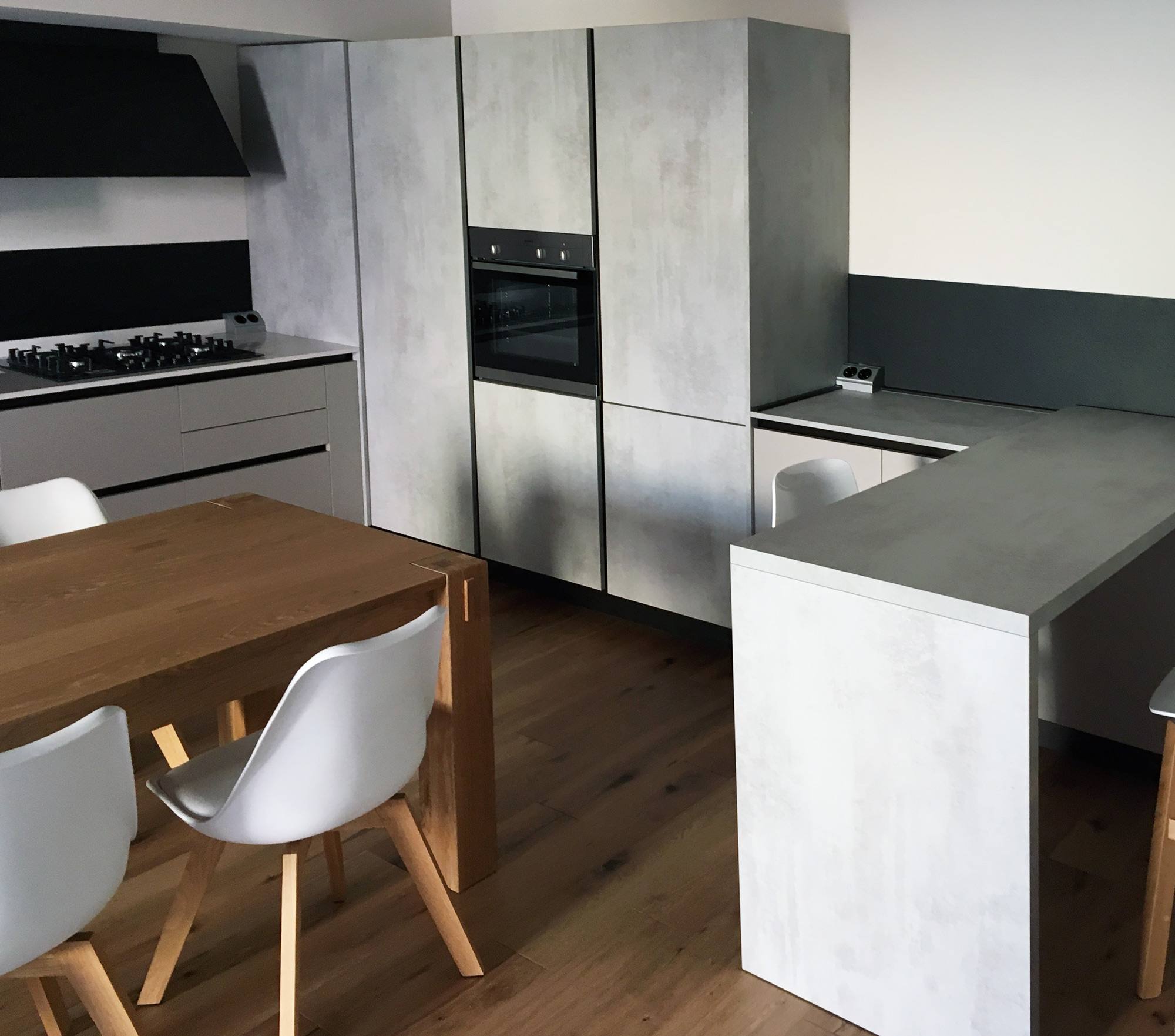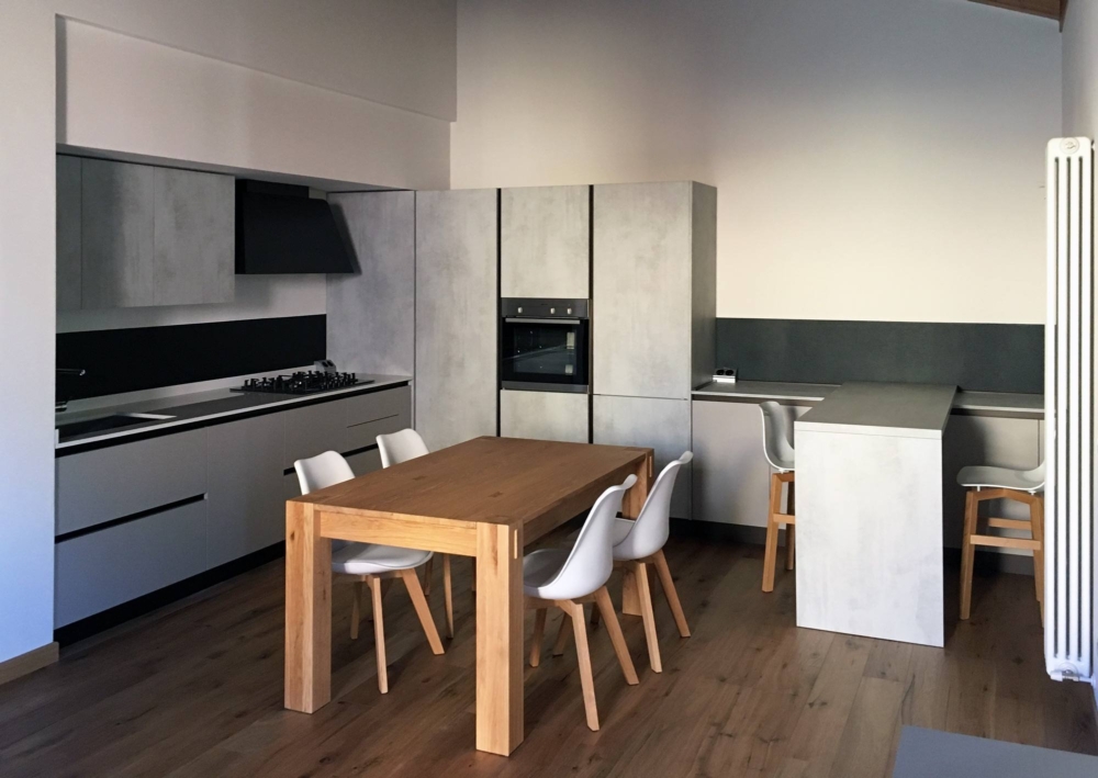 A casa di Matteo, a Mirandola, abbiamo uno spazio ampio e rappresentativo, tutt’uno con la zona living e in continuità visiva con le travi a vista che rendono questa cucina un ambiente ricco e integrato nell’architettura. Il gioco di volumi verticali, il cartongesso che ne enfatizza la forma stessa della cucina rendono le proporzioni più dinamiche e creano un effetto scenografico di grande impatto. Ogni progettazione viene da noi curata nei minimi dettagli tenendo sempre in considerazione armonia, forme, colori e gusti del cliente che per noi di Bisi Arredamenti è sempre unico, importante, speciale, diverso.
