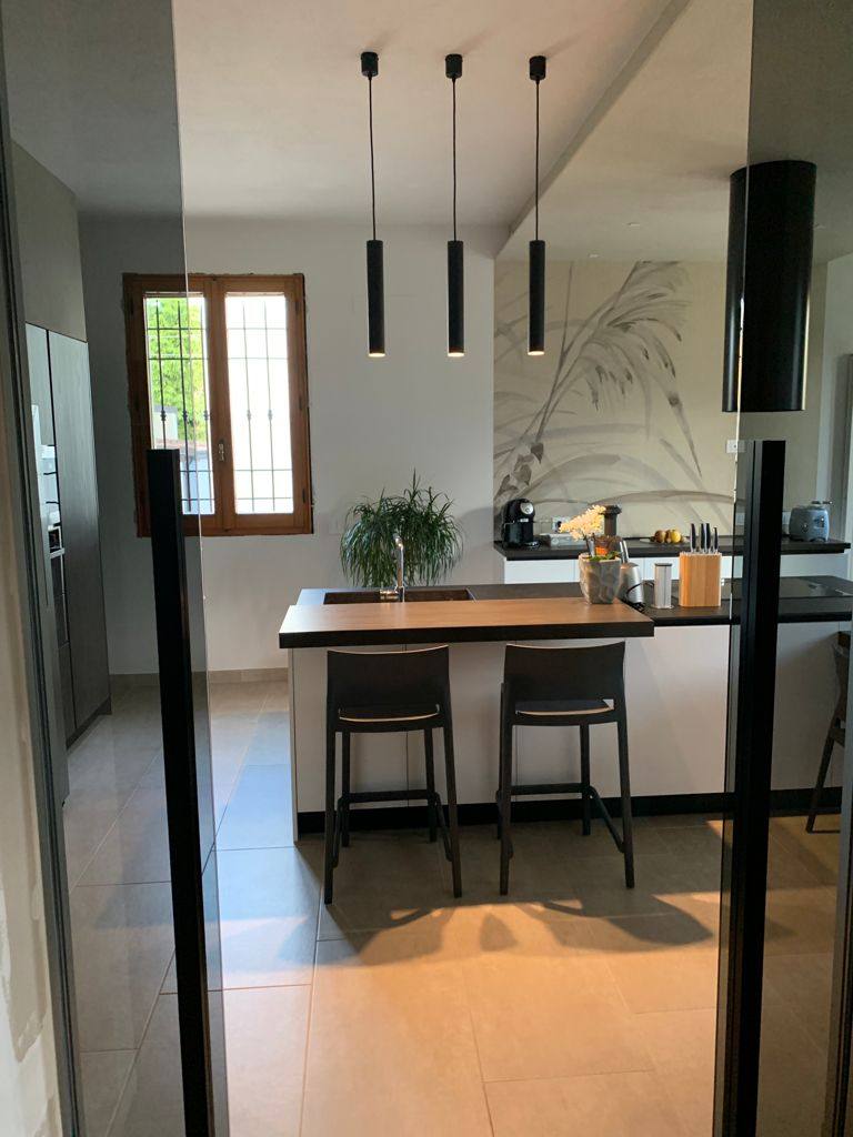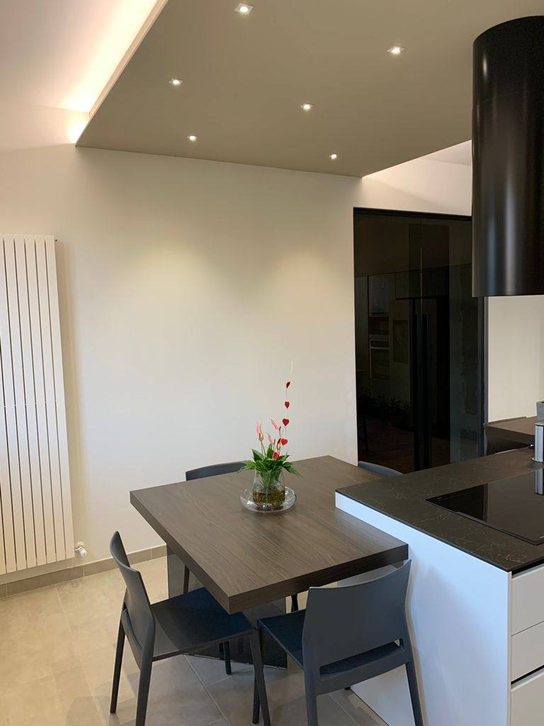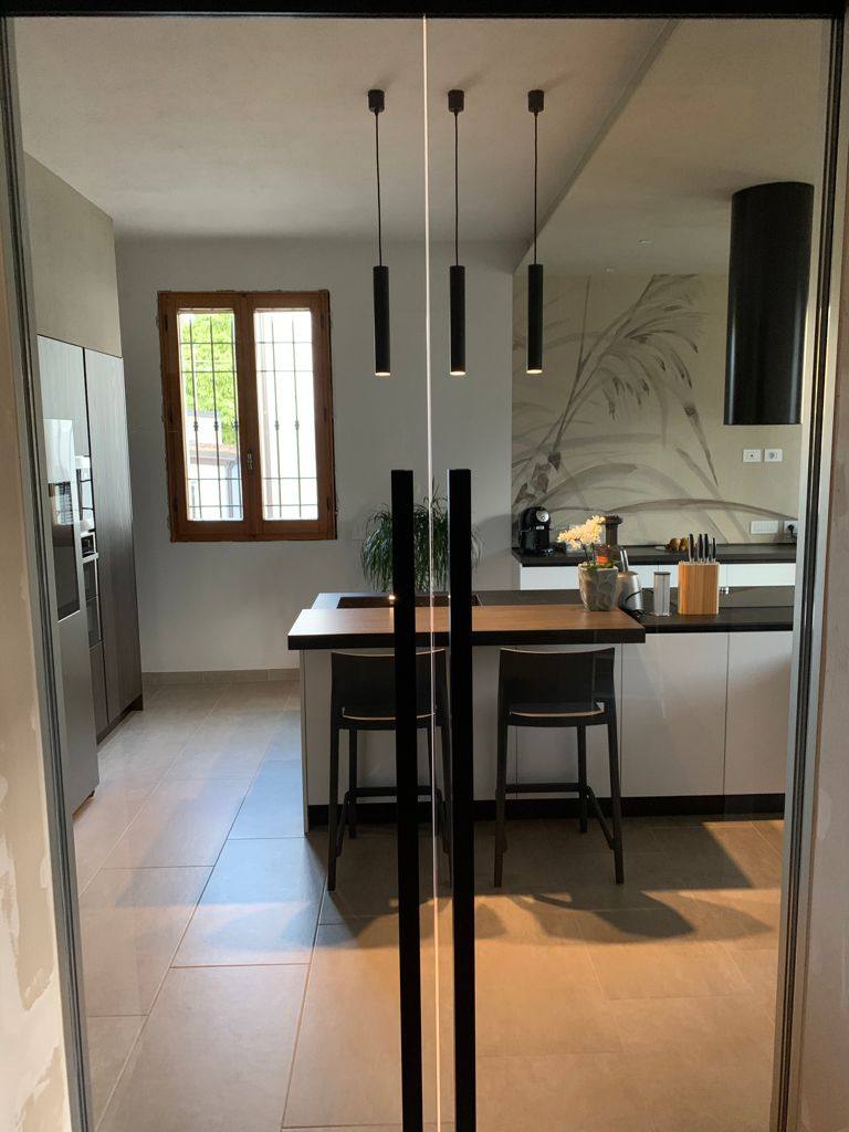 Per questa ristrutturazione, abbiamo seguito il cantiere fino dalle prime fasi di definizione del progetto e abbiamo pensato insieme ai proprietari l’arredo completo, l’illuminazione fino alla scelta delle carte da parati.